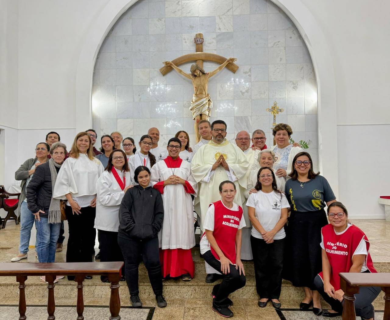 Como forma de agradecimento e reconhecimento por sua dedicação e serviço à comunidade, o grupo presenteou o sacerdote com um belo quadro de Jesus Misericordioso, com a inscrição: “Jesus, eu confio em Vós”. O gesto simboliza não apenas a fé e a confiança em Cristo, mas também a gratidão por todo o amor e cuidado pastoral que Padre Carlos tem oferecido à nossa paróquia.