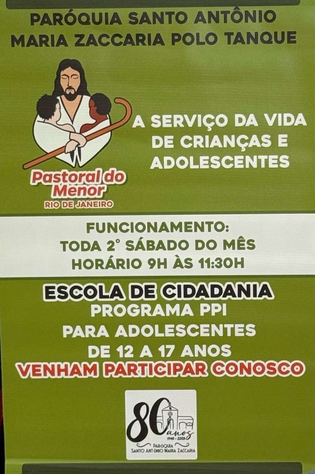No dia 25/10/25, na PSAMZ, foi oficialmente inaugurada a Pastoral do Menor – Polo Tanque.