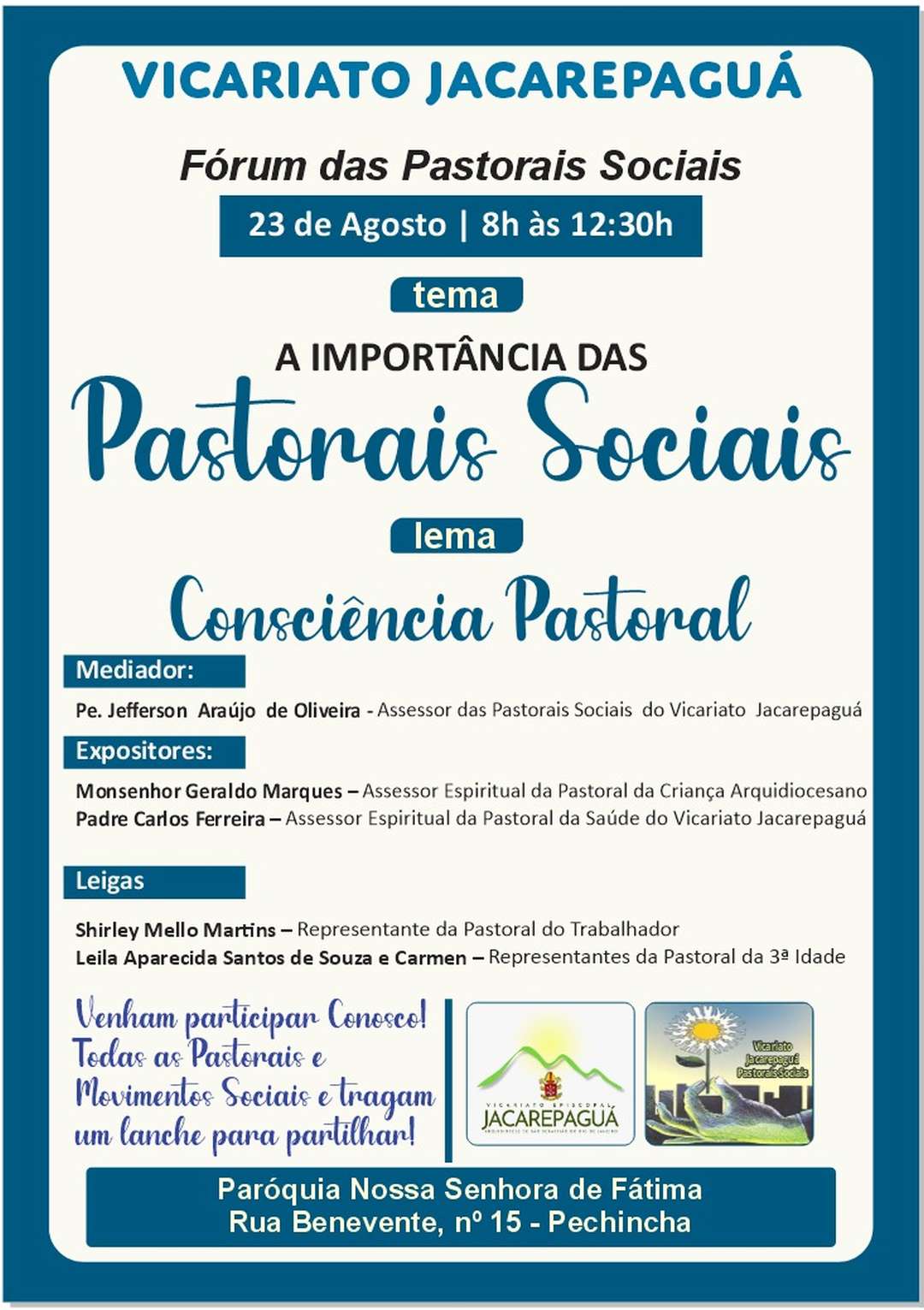 No último sábado, 23 de agosto, nossa paróquia marcou presença no Fórum das Pastorais Sociais do Vicariato Jacarepaguá, realizado na Paróquia Nossa Senhora de Fátima, no Pechincha.
