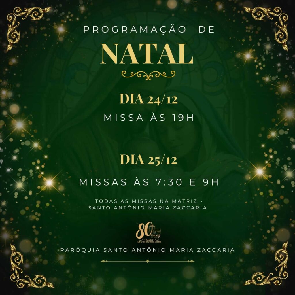 A Paróquia Santo Antônio Maria Zaccaria convida a comunidade para celebrar o Natal com fé, união e alegria.